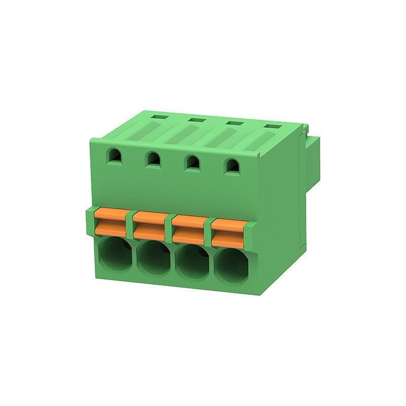 15EDGKD-3.81-04P-14-00L(H) Degson Terminal Block, Plug 4 Position 0.150″ (3.81mm) 8A 300V 1628 AWG Tin Screwless – Push-In Spring Green Free Hanging (In-Line)