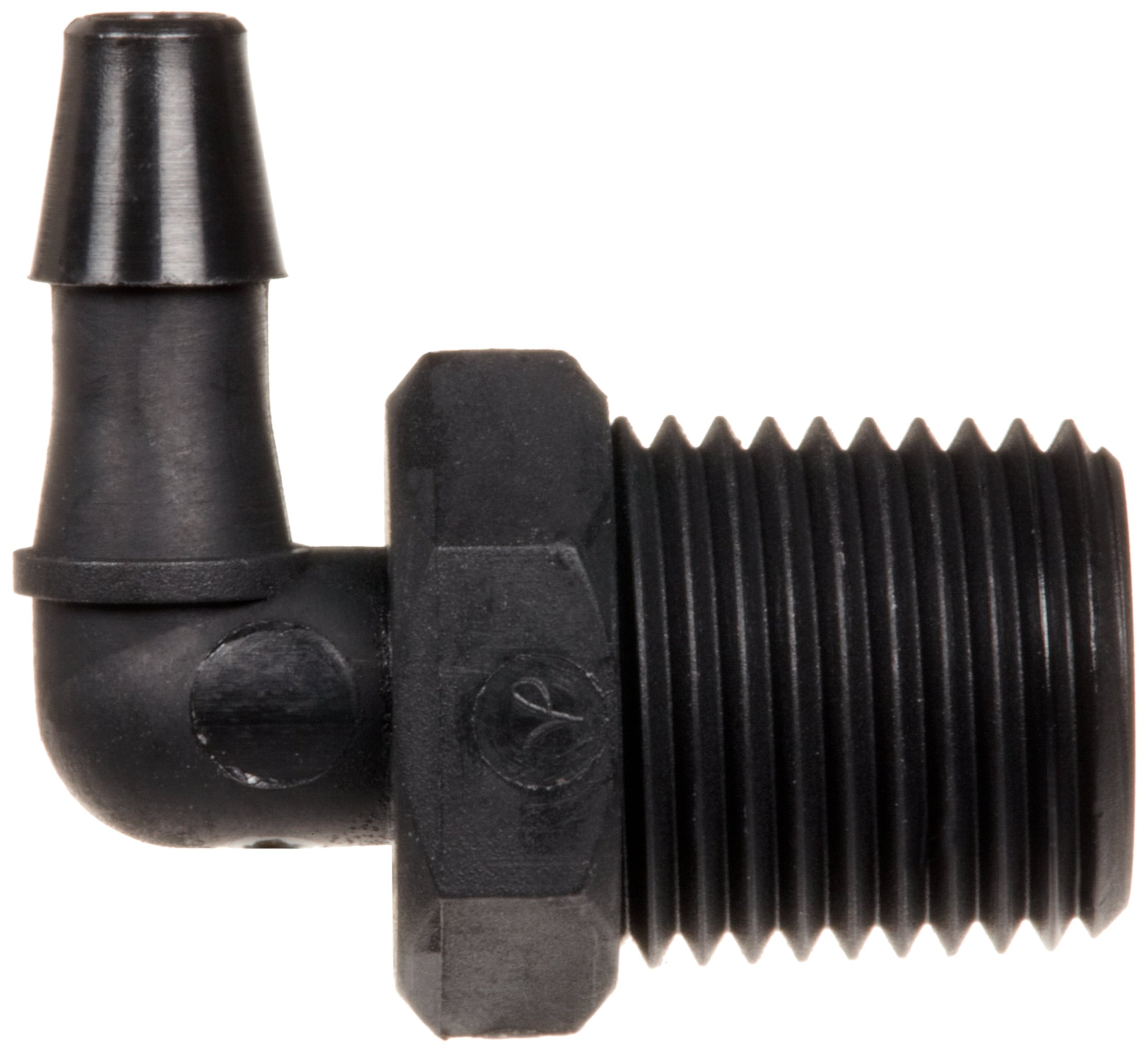 18L230-1 Nordson Medical Threaded Fitting 1/8″ 27 NPT Thread Elbow with 7/16″ Hex to 200 Series Barb 1/8″ (3.2 mm) ID Tubing White Nylon RoHS
