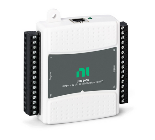 The NI 193132-02 is a low-cost, multifunction DAQ device. It offers analog I/O, digital I/O, and a 32bit counter. The 6008 provides basic functionality for applications such as simple data logging, portable measurements, and academic lab experiments.