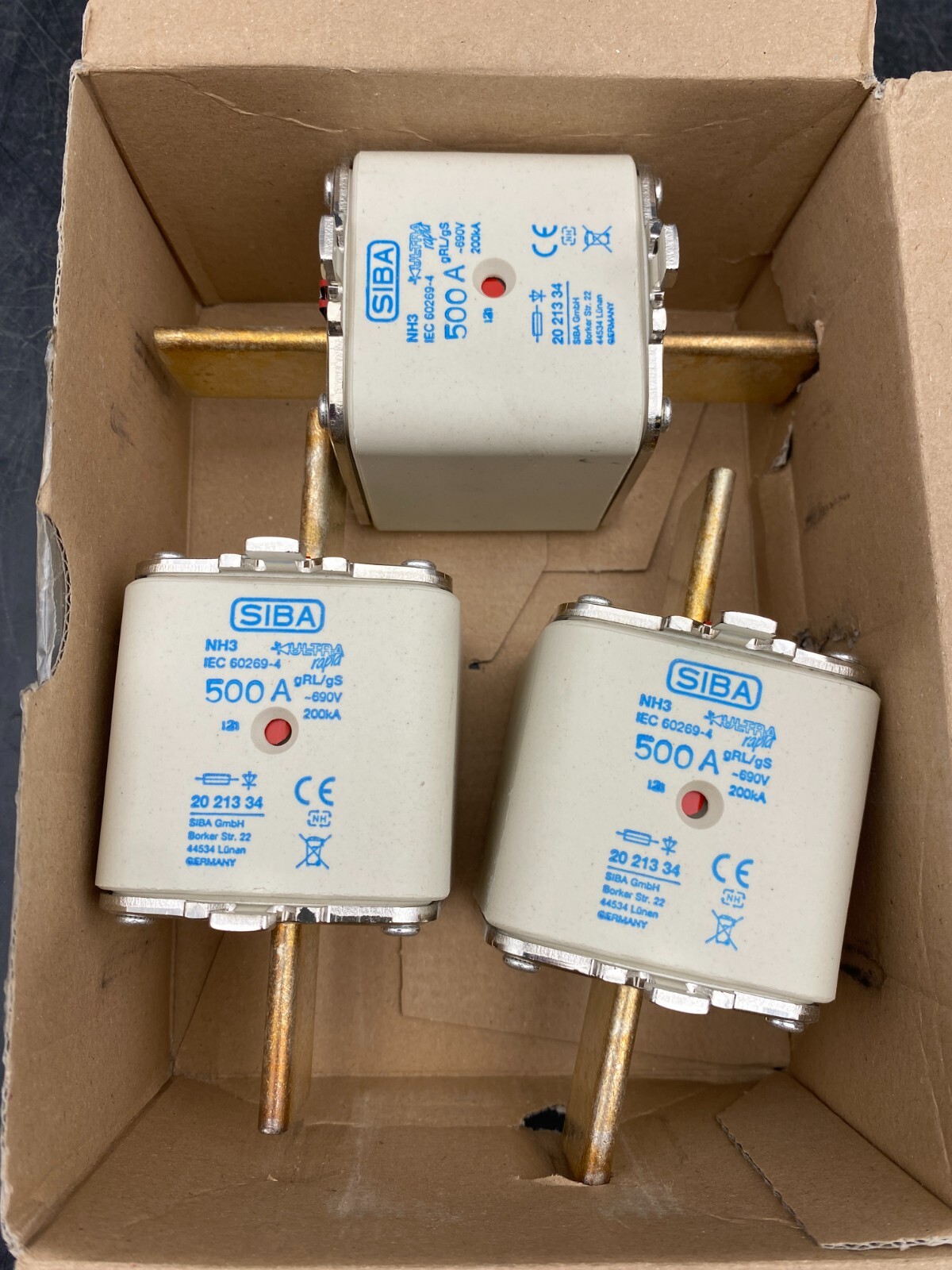 2002829 Siba Fuse-Link NH1XL Fast Acting Semiconductor Protection Fuse Link, Knife Contacts