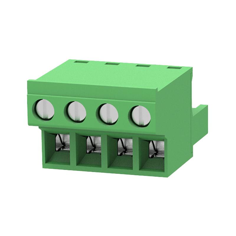 2EDGKC-5.0-04P-14-00L(H) Degson Terminal Block 4 Position 0.197″ (5.00mm) 15 A 300V 1228 AWG Tin Retention Latches (NonWire Side)Screw – Rising Cage Clamp Green Free Hanging (In-Line)