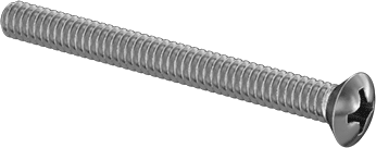 91802A157 Screws have a decorative, domed head that sits above the surface when installed. They’re angled under the head so they can be countersunk in a hole. Made from 18-8 stainless steel, they have good chemical resistance and may be mildly magnetic, Passivated 18-8 Stainless Steel Phillips Oval Head Screws, 6-32 Thread, 1-1/2″ Long, Length is measured from the top of the bevel. RoHS