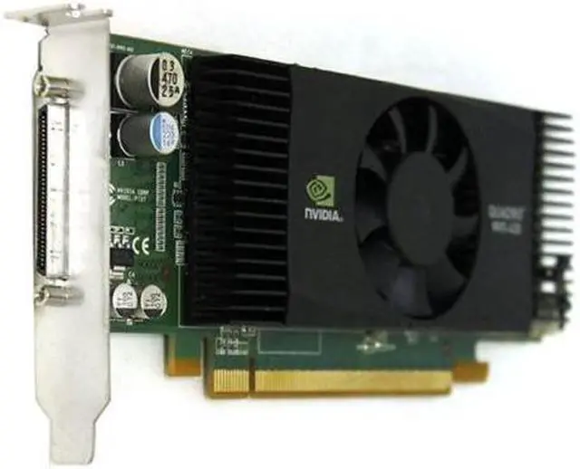 The Dell NVIDIA Quadro NVS 420 512 MB GDDR3 SDRAM PCI Express x16 Graphics Adapter delivers a combination of reliable hardware and software that gives you a stable and productive computer system. The NVIDIA Quadro NVS 420 is capable of multitasking and is able to run up to four 30-inch displays at a resolution of 2560×1600 with just one graphics card. The Dell NVIDIA Quadro NVS 420 allows you to copy desktops over several systems. The graphics adapter is compliant with Energy Star, featuring low maximum and low idle power use levels. This energy-efficient system has the potential to save users on operating costs as well as their environmental footprint.