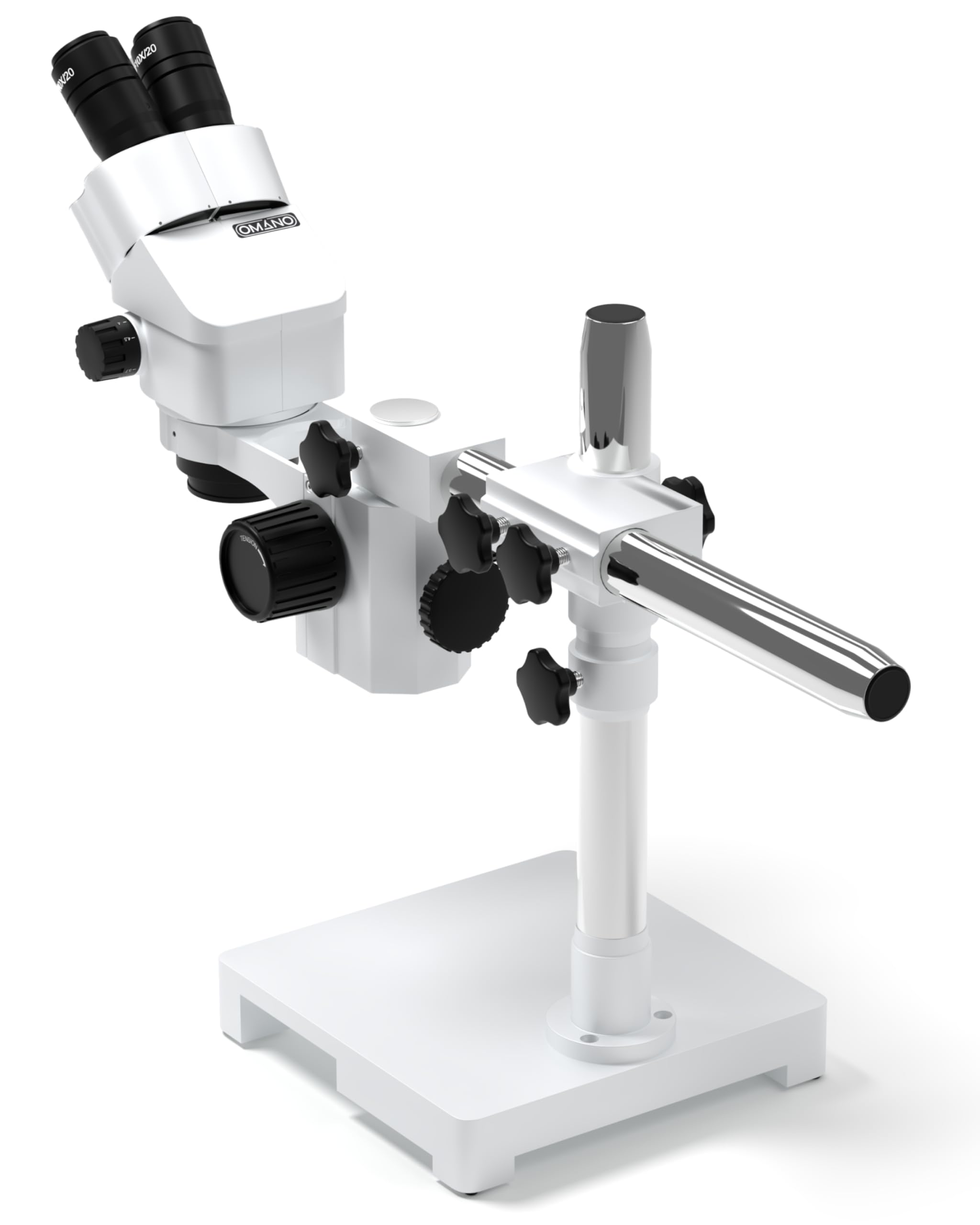 This binocular 7X-45X zoom stereo microscope on single-arm boom stand provides crystal clear sharp clear images. It comes with a binocular head with super widefield optics and sturdy single-arm boom stand. The 45 degree inclined binocular oculars and high-eyepoint optical design ensures a comfortable observation for all users including eyeglass wearers. The single-arm boom stand allows you to turn the microscope head around two different axes, letting you point it in various directions. This microscope offers high resolution, super widefield of view, 6.5:1 magnifying zoom range and 4″ (100mm) working distance. It is an ideal instrument for researchers, gemologists, engravers, collectors and anyone in semiconductor and electronics industry.